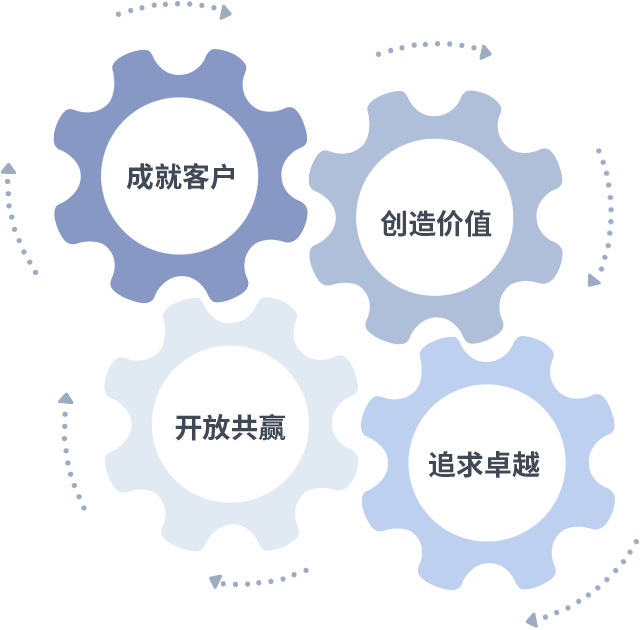 成就客户是一切决策的出发点,创造价值是衡量所有工作的标准,追求卓越是YP街机电子做事做人的态度,开放共赢是YP街机电子的格局也是最终的结果。价值观的齿轮环环相扣,推动着组织里的每个人不断向前。